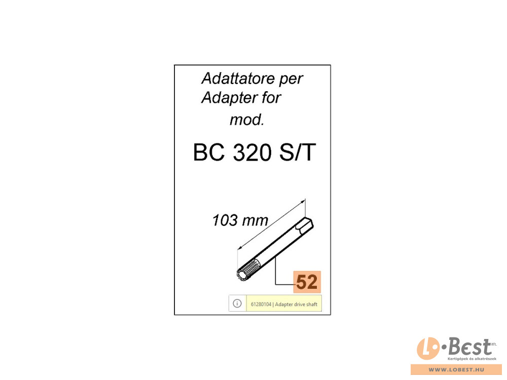 Meghajtó tengely toldat sövényvágó adapterhez