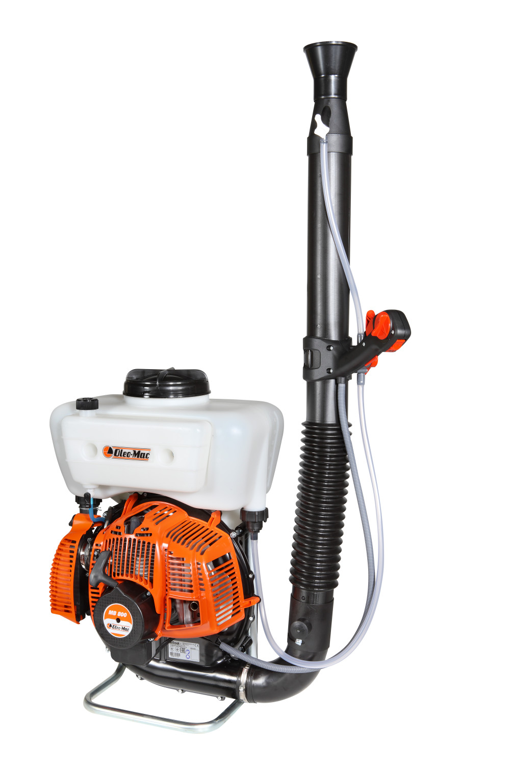 Az Oleo-Mac MB 800 benzinmotoros háti permetező egy ipari minőségű, professzionális eszköz, amelyet kifejezetten hosszú és intenzív munkákra terveztek. A gép szívét egy EURO 2 szabványnak megfelelő motor alkotja, amely csökkentett üzemanyag-fogyasztással és alacsony károsanyag-kibocsátással működik. Ez nemcsak környezetbarátabbá teszi, hanem gazdaságosabbá is a használatát.