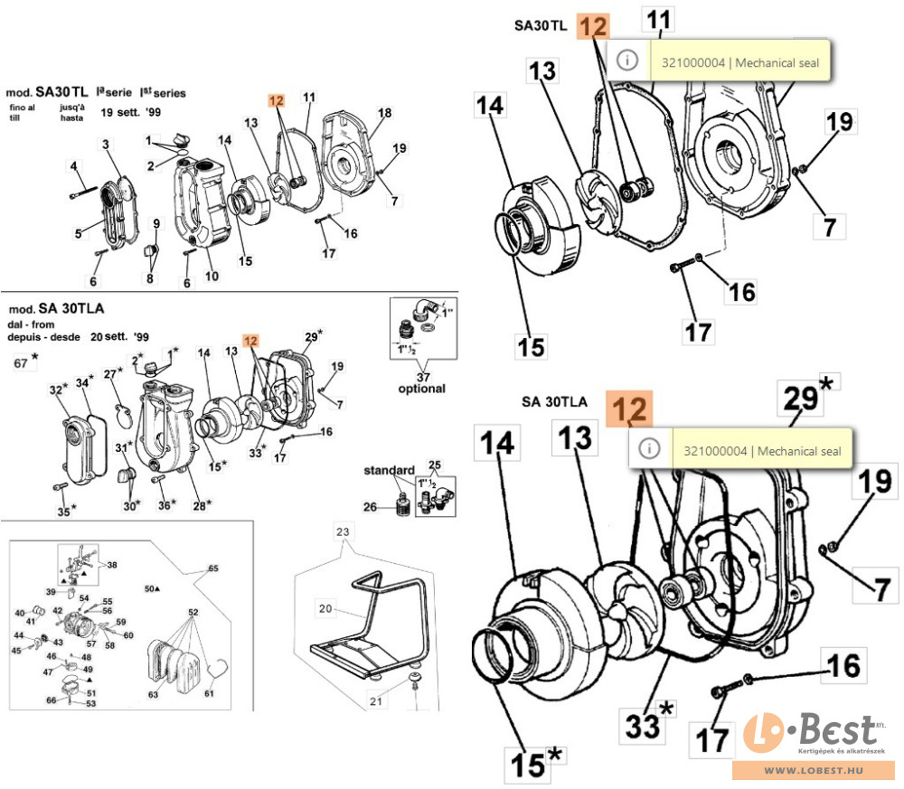 Tömszelence, csúszógyűrűs tömítés SA 30, SC 23, SC 33